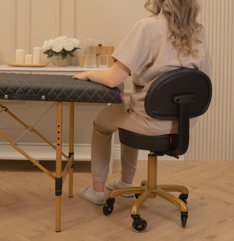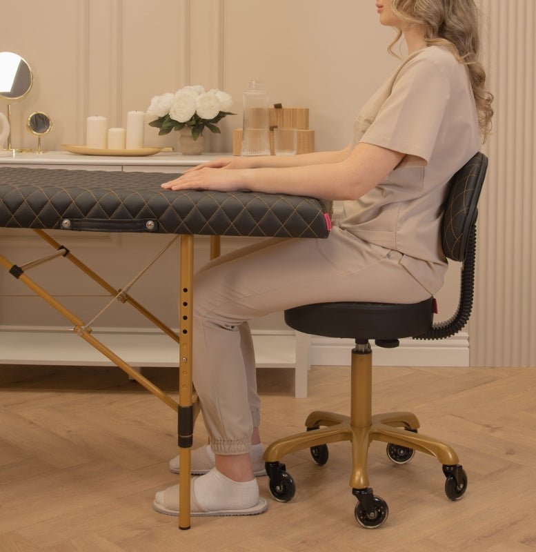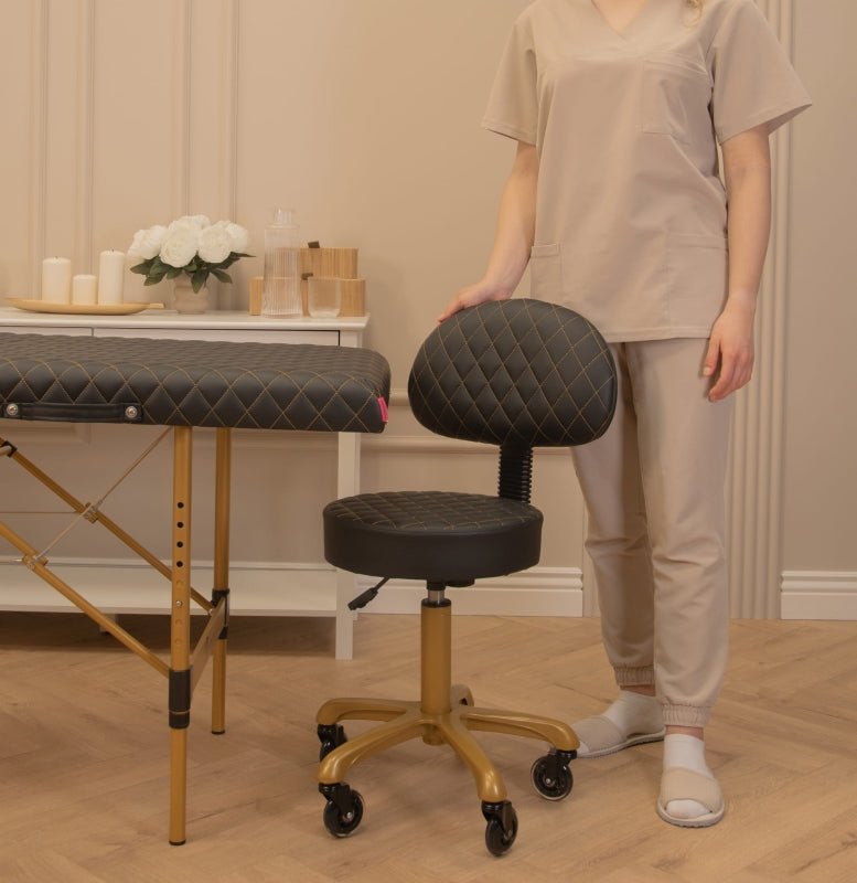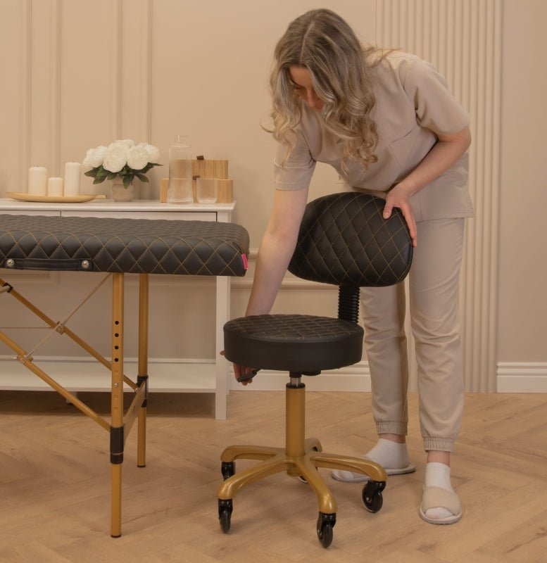 Markės i-coucou taburetė buvo sukurta atsižvelgiant į darbo komfortą kosmetikos, kirpyklų ar tatuiruočių studijose. Įrengta plačia sėdyne, užpildyta net 7 centimetrų storio apmušalų putomis, ji užtikrina patogumą net ir ilgų darbo valandų metu. Apmušalas pagamintas iš aukštos kokybės ekoskinos, papuoštas estetiniais siuvinėjimais, yra ne tik elegantiškas, bet ir atsparus valymo priemonėms, aliejams ir vandeniui, kas palengvina krėslo priežiūrą idealiame higienos stovyje.