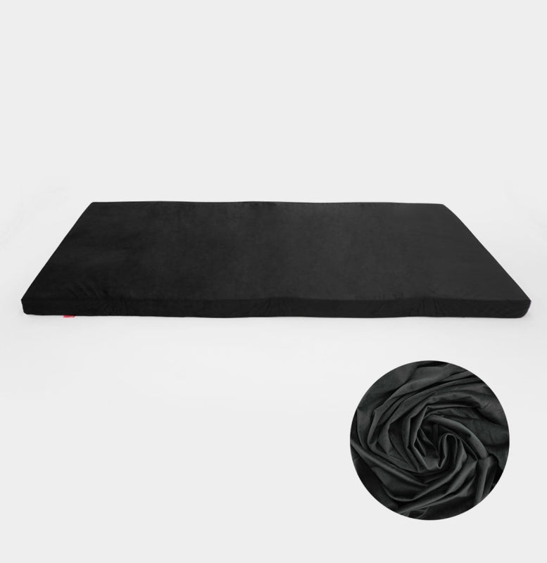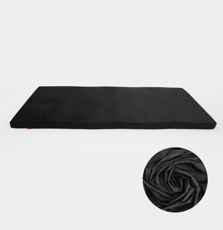 The zipper allows for quick and easy attachment and removal of the cover, significantly improving hygiene during everyday use. Additionally, the cover features three Velcro straps sewn into the underside, which stabilize the mattress during entry and exit, preventing it from shifting. The anti-slip black lining further enhances safety and comfort.
