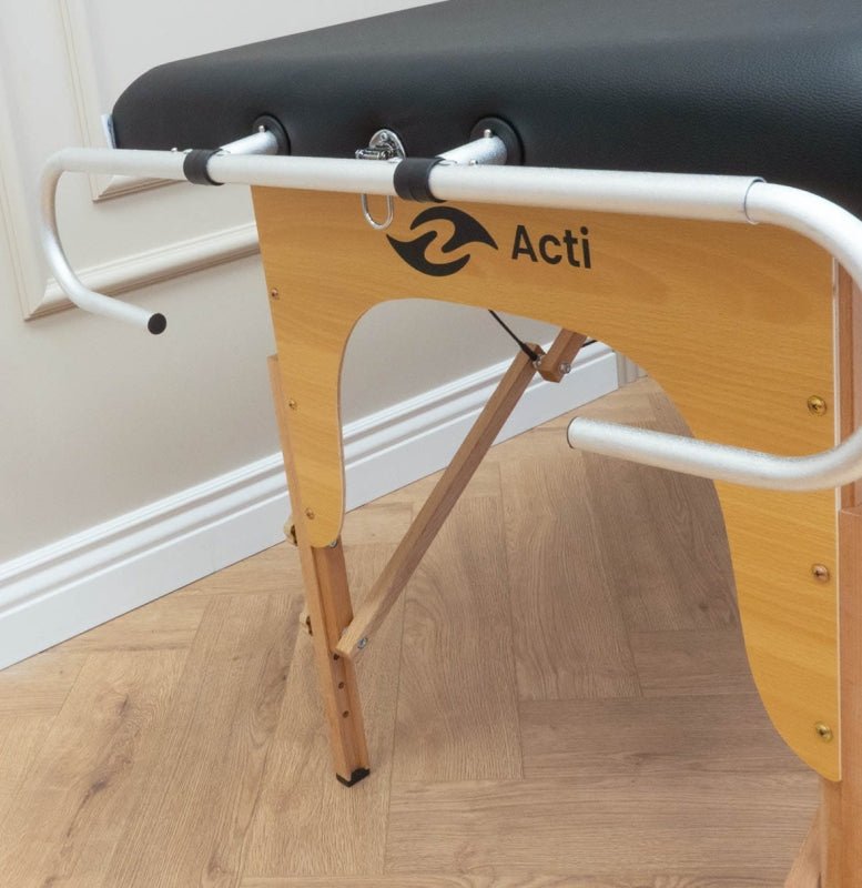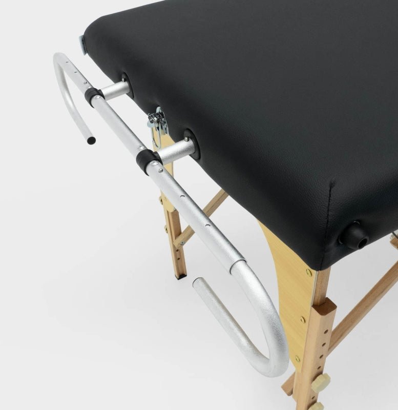 The handle is made of lightweight yet durable metal, resistant to mechanical damage. Installation is simple and involves simply attaching the handle to the massage table – the adjustable design allows for a variety of table models and ensures a stable fit. Specially contoured arms make it easy to attach and remove the rollers, while also protecting them from accidental slippage during use.