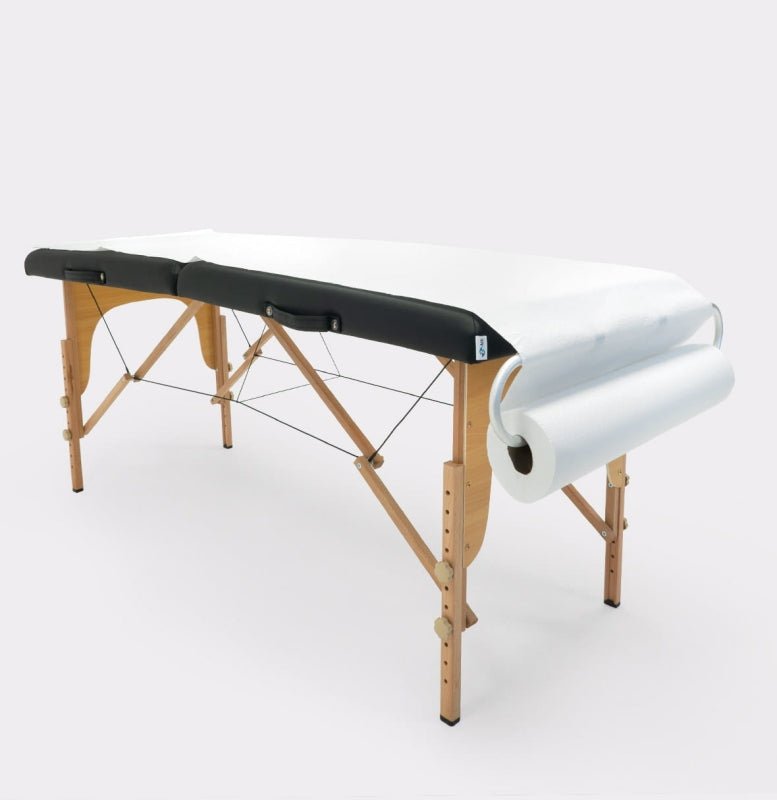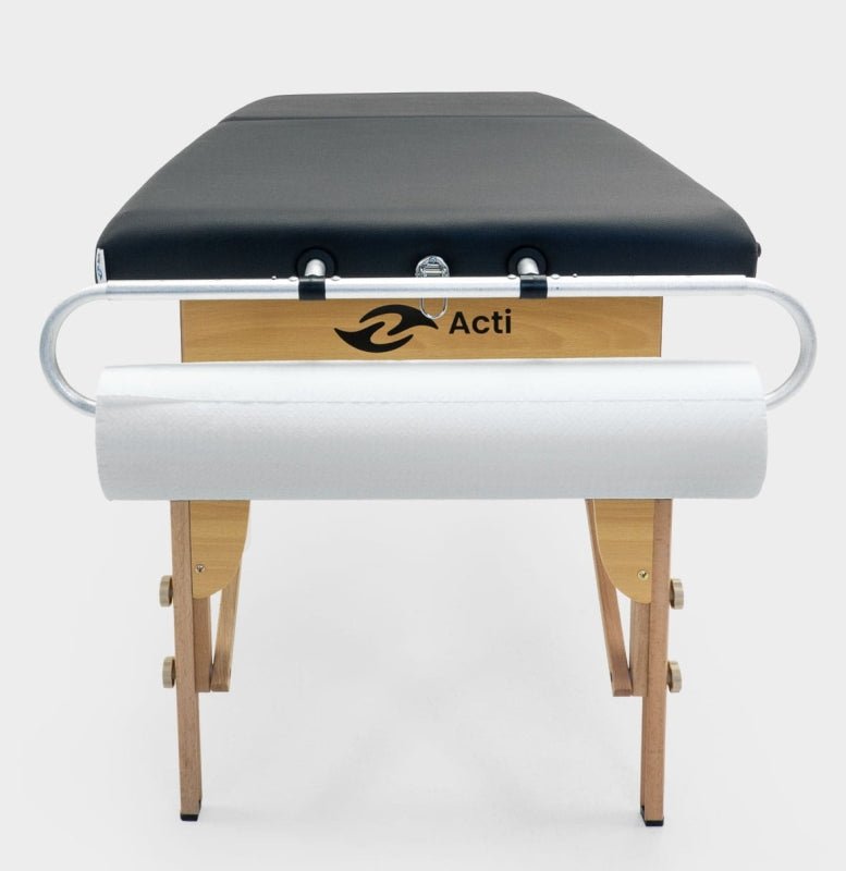 An adjustable roll holder for protective pads is a practical accessory that significantly simplifies daily work in massage parlors, beauty salons, and medical facilities. It keeps rolls of pads within easy reach, allowing for quick and convenient replacement of protective material between treatments. This solution not only saves time but also increases work comfort and improves hygiene standards in the salon.